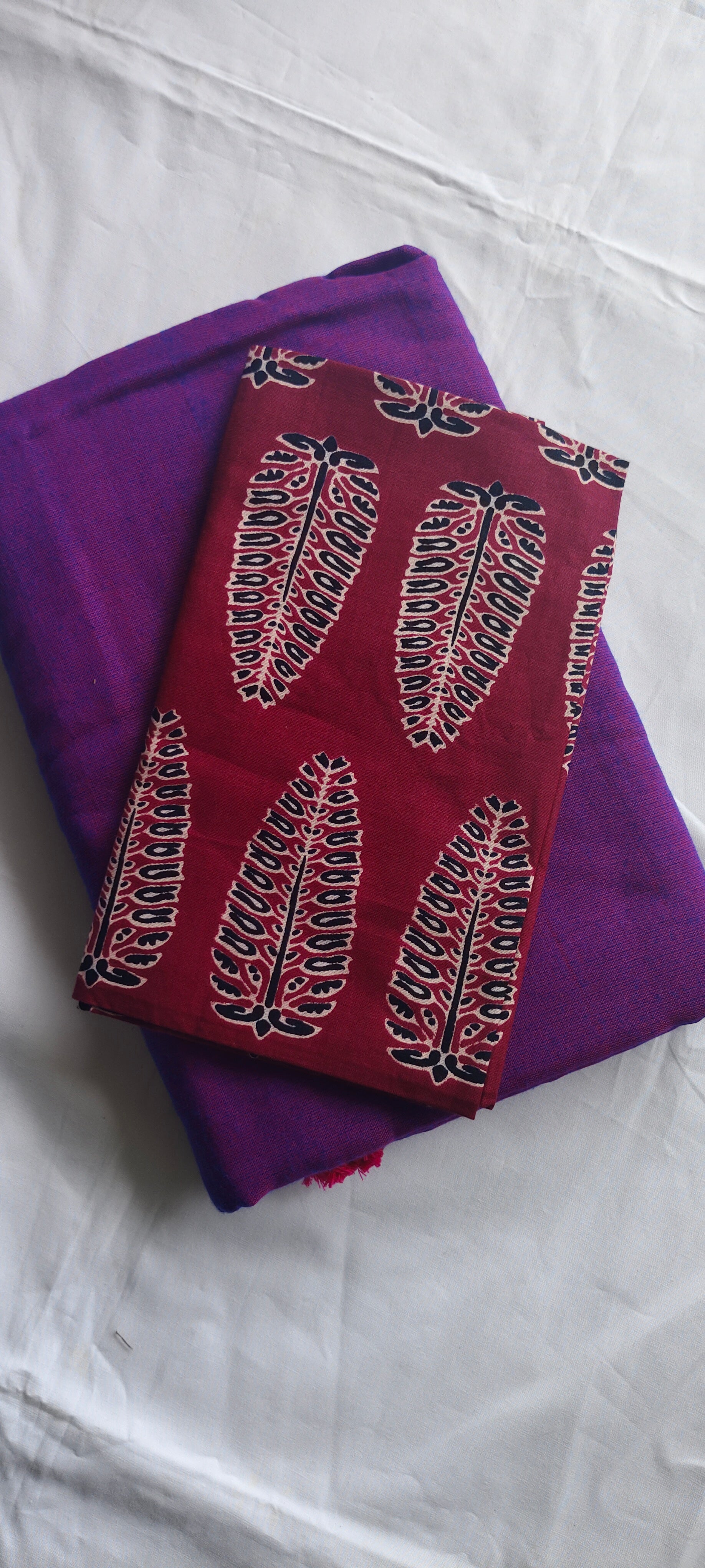 PLAIN KHADI SAREE WITH RUNNING BLOUSE N PALLU PAIRED WITH ADDITIONAL COTTON PRINTED BLOUSE
