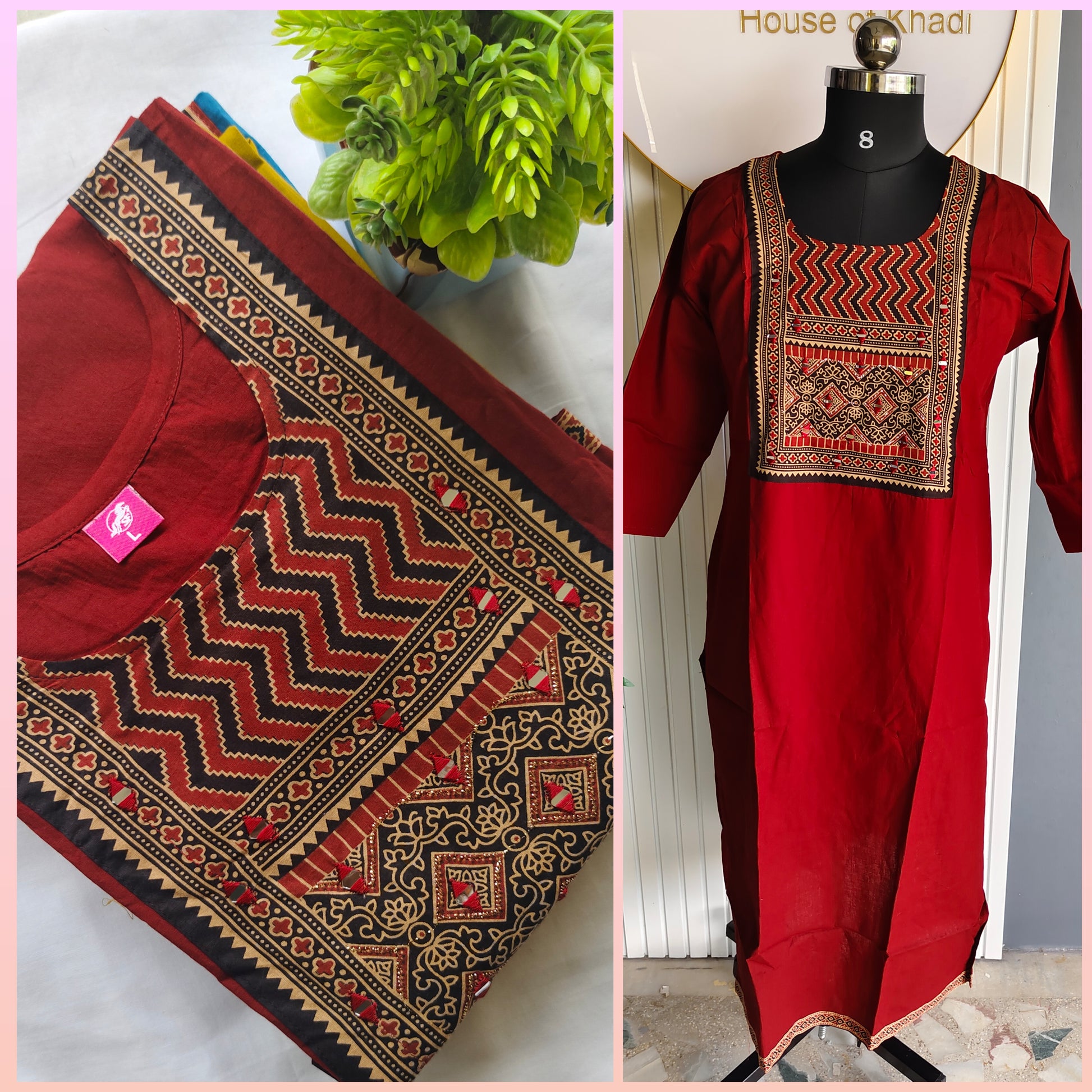 ✅SOFT AJRAK PATCH MIRROR WORK KURTI