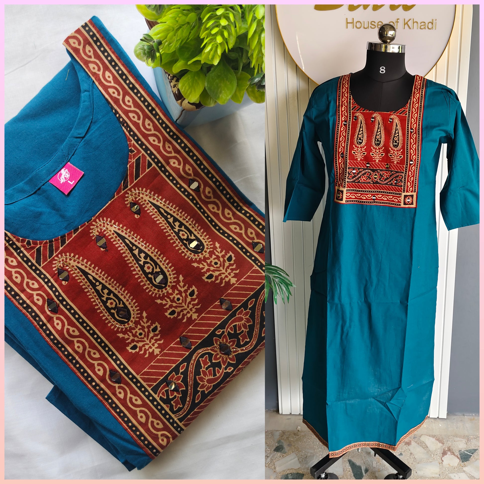 ✅SOFT AJRAK PATCH MIRROR WORK KURTI