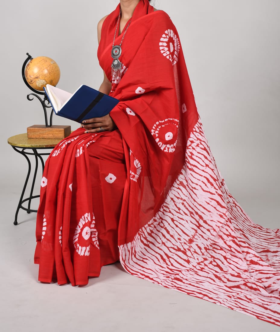 TRENDY BLOCK PRINT VERY SOFT MUL COTTON SAREES WITH CONTRAST BLOUSE SAME AS IN PHOTO