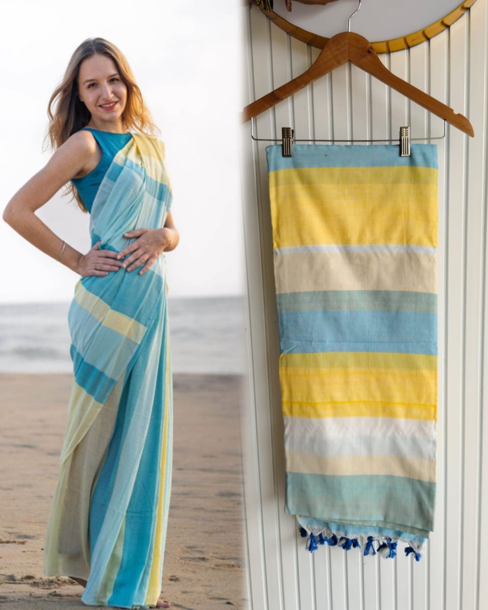 Saree full small stripes with running pallu with plain blouse