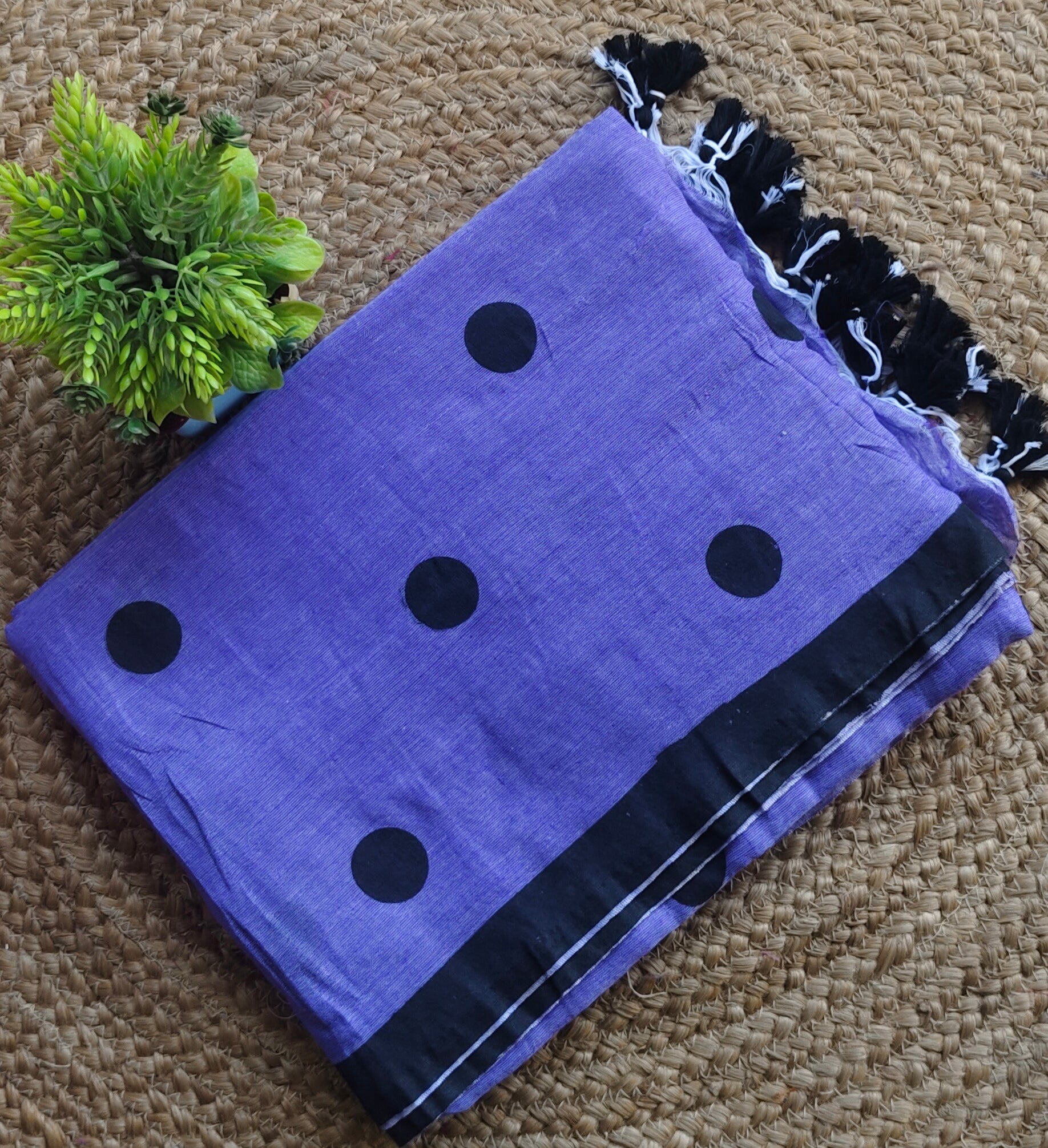 Soft khadhi saree with polka dots prints all over saree with running blouse