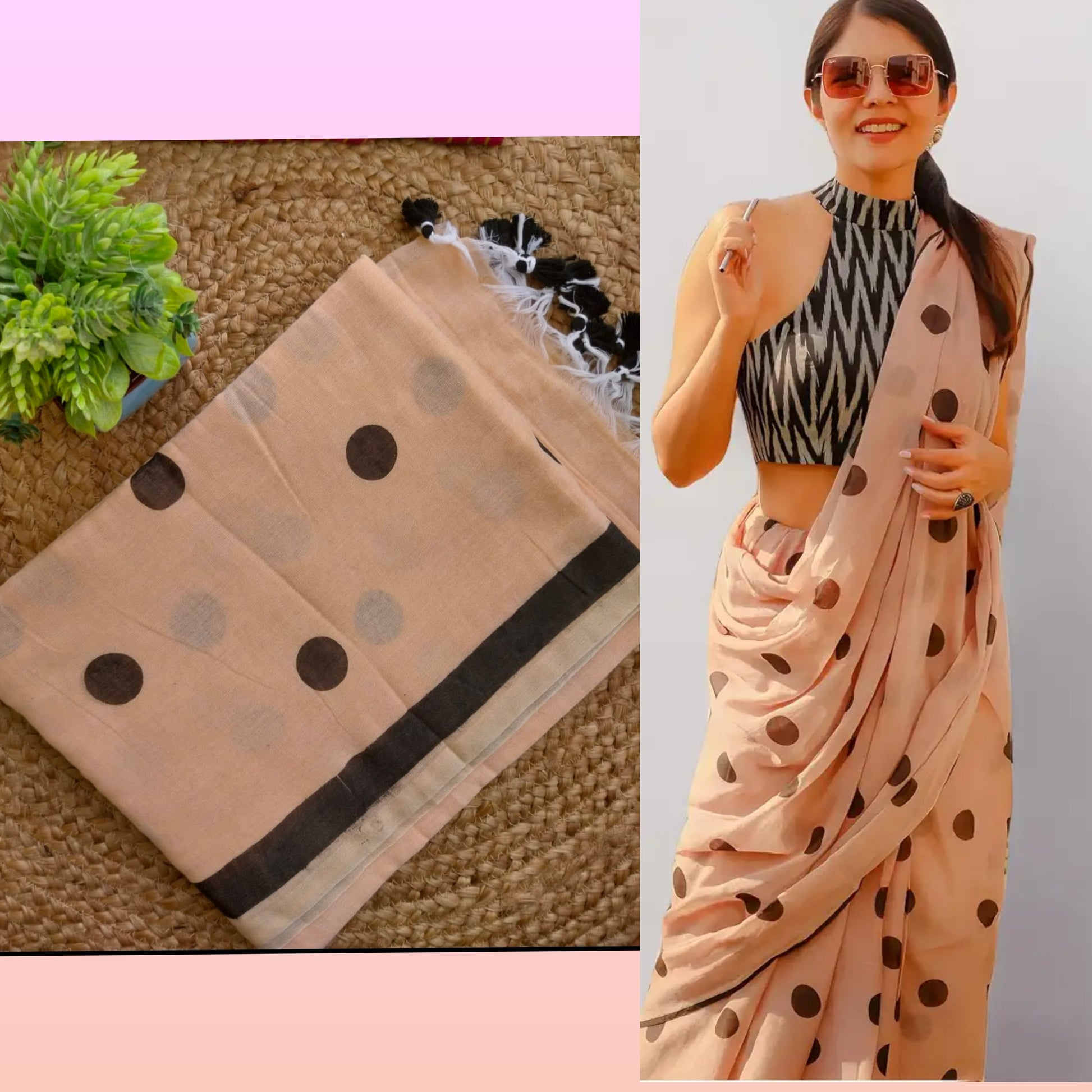 Soft khadhi saree with polka dots prints all over saree with running blouse