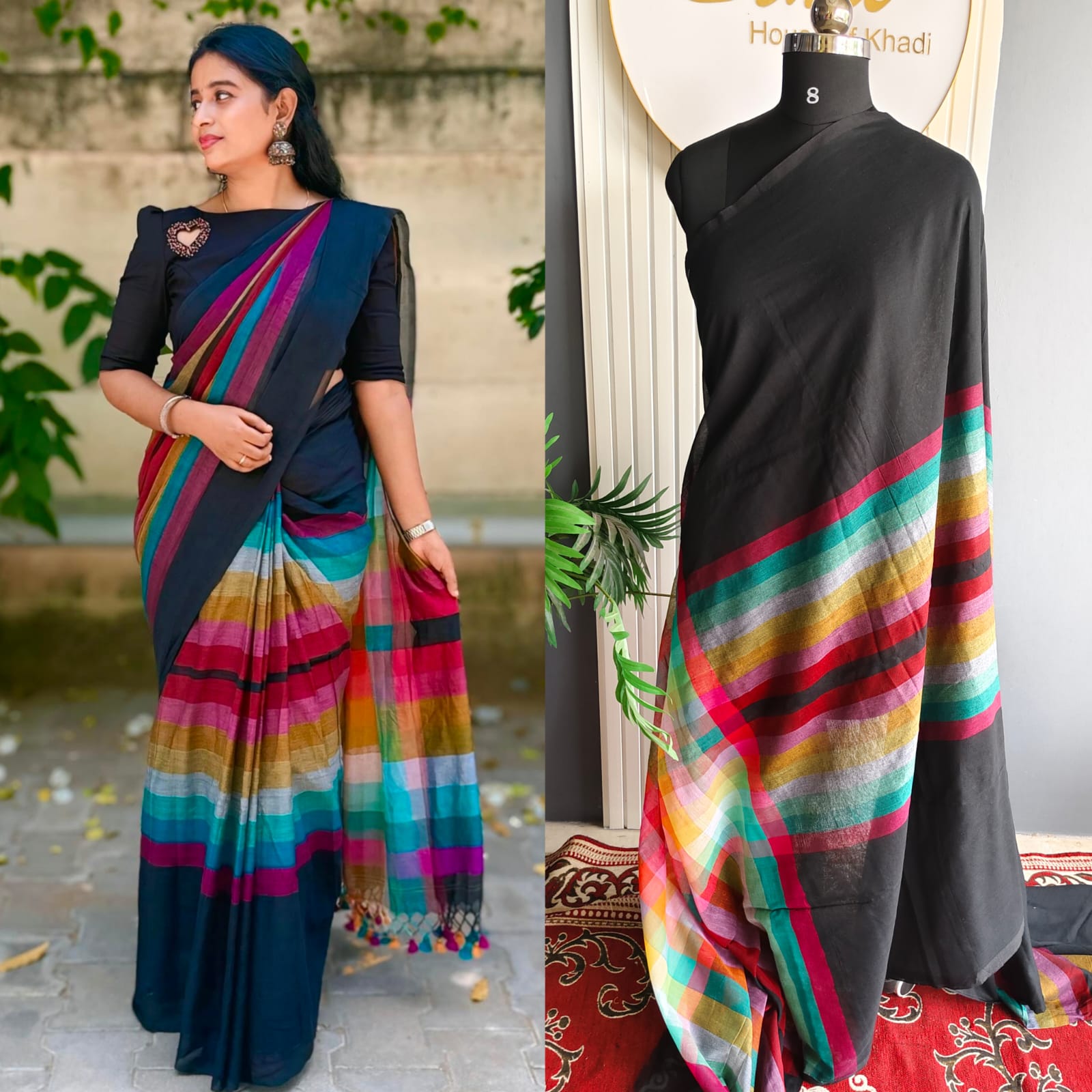 Pure 120 count mul cotton saree with running pallu n without blouse