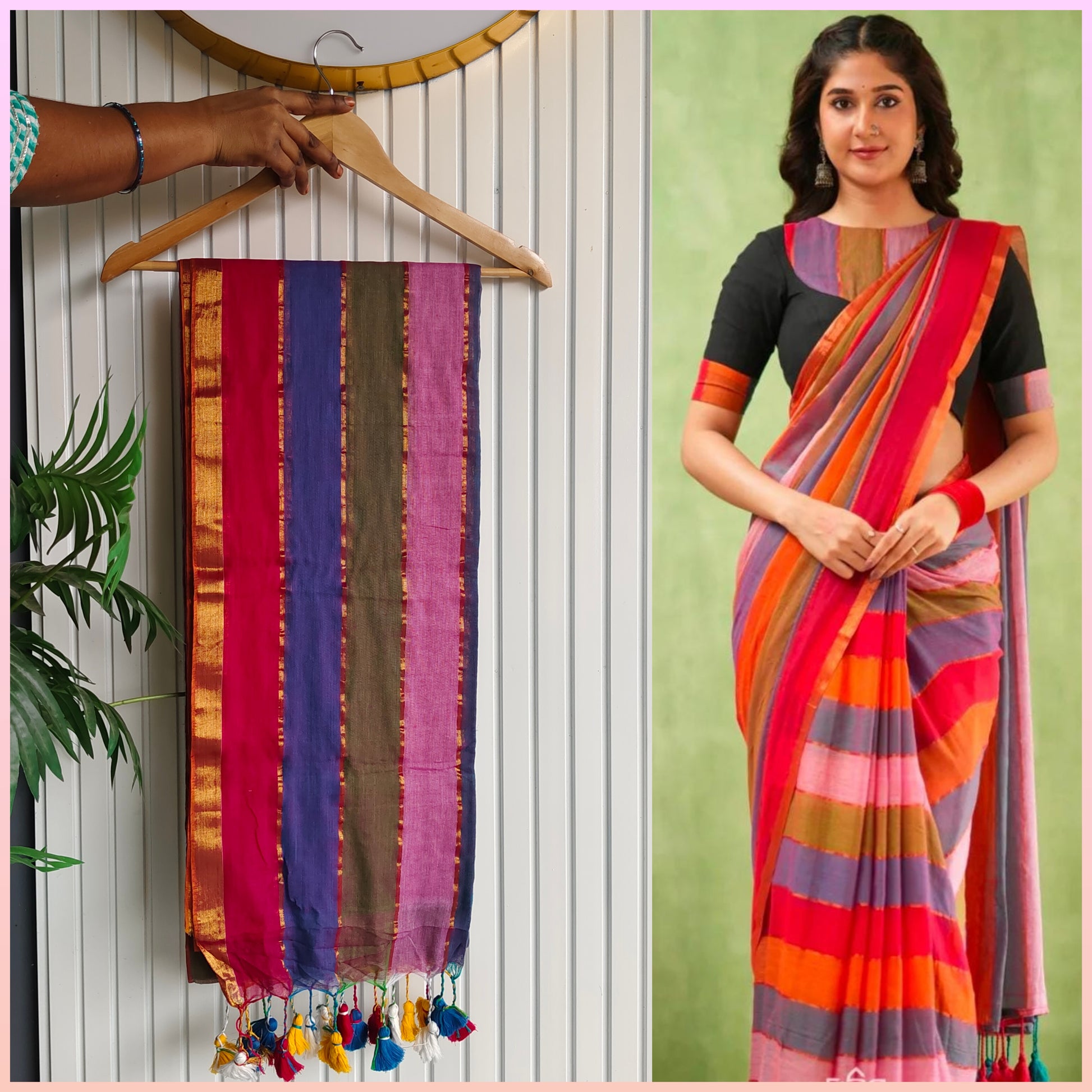 Pure 120 count mul cotton saree with running pallu n without blouse